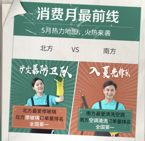 58同城到家精选神奇家务节数据报告,从家政服务消费者画像、家政服务使用行为等方面,勾勒出活动期间家政服务供需现状,为市场提供详细的信息参考。报告显示,日常保洁服务为最受用户青睐的品类,订单量同比增长767%;南北城市保洁需求差异明显,北方擦玻璃服务订单量全国第一,南方城市偏爱空调清洗服务。